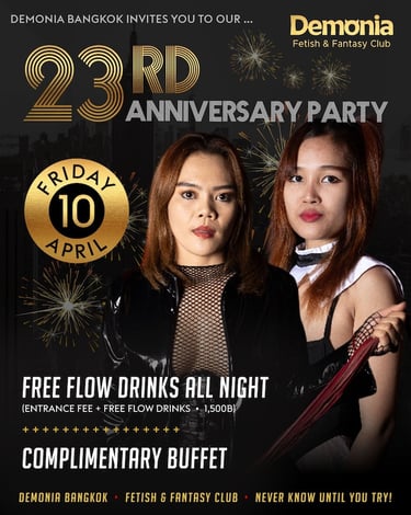 If you have any questions about BDSM, fetishes, our upcoming events, private parties and more - Or want information about our private themed areas, please do not hesitate to email us at welcome@demoniabangkok.com